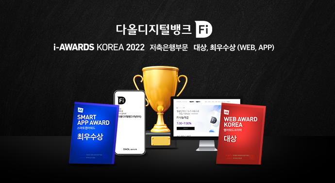 다올디지털뱅크 Fi(파이)가 i-AWARDS KOREA 2022에서 저축은행부문 대상, 최우수상(Web, APP)을 수상 하게 되었습니다!!