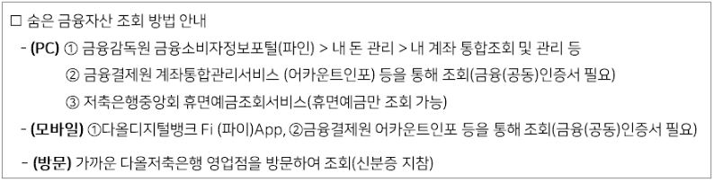 「금융권 공동 숨은 금융자산 찾아주기 캠페인」에 따라 숨은 금융자산 조회 방법을 안내드리고 있습니다.